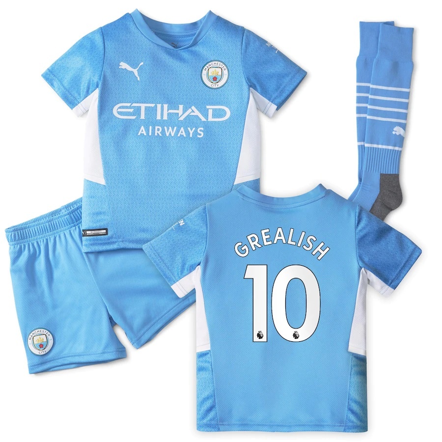 Manchester City Home Kid Kit Football Shirt UK 2021/22 Grealish 10 Printed